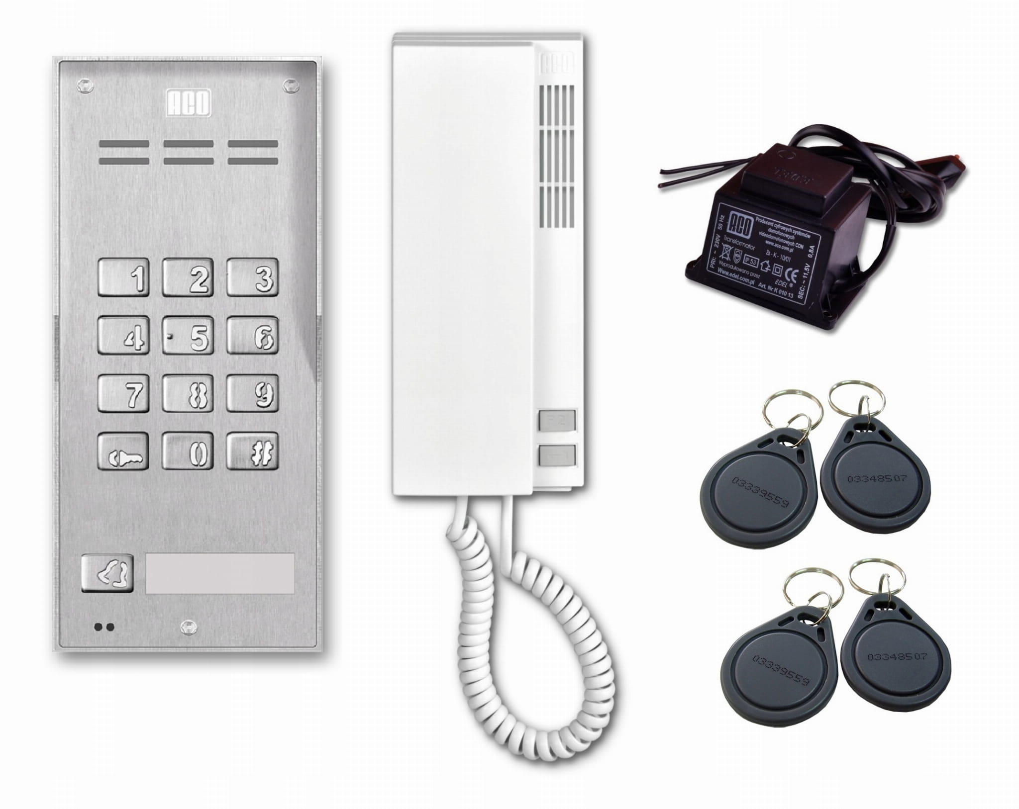 - Unifon, transformator sieciowy i breloki w zestawie