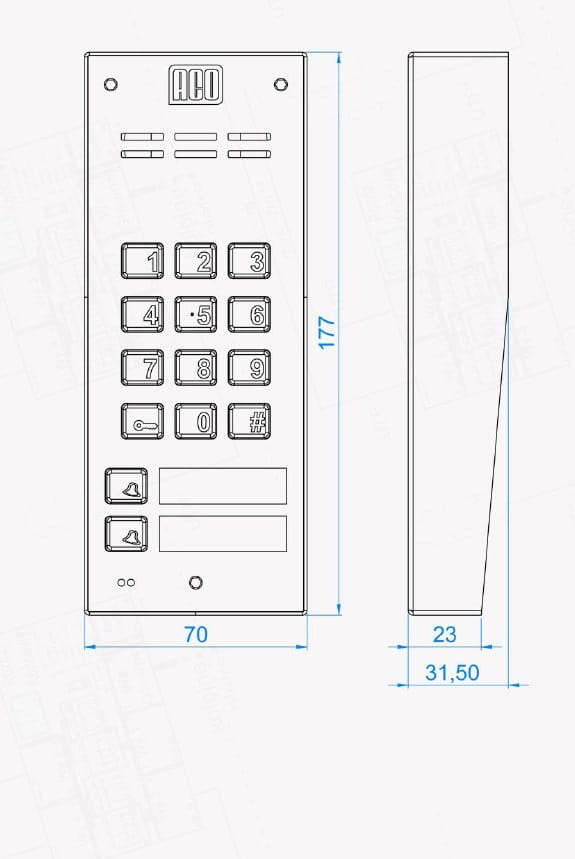 - Max. ilość abonentów: 11 lokali (1 indywidualny przycisk wywołania + 10 z zamka szyfrowego)