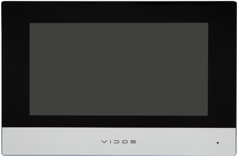 Wbudowany slot na kartę microSD pozwala na zapisywanie obrazów z wizyt gości i podglądu z kamer, który jest dostępny bez wywołania ze stacji bramowej. Monitor współpracuje i jest całkowicie konfigurowalny przy użyciu programu VIDOS ONE PC. Kompatybilny z aplikacją na urządzenia mobilne VIDOS ONE