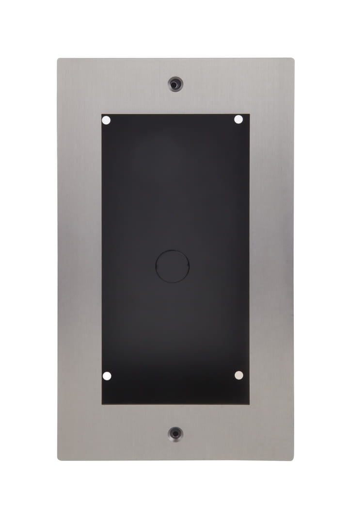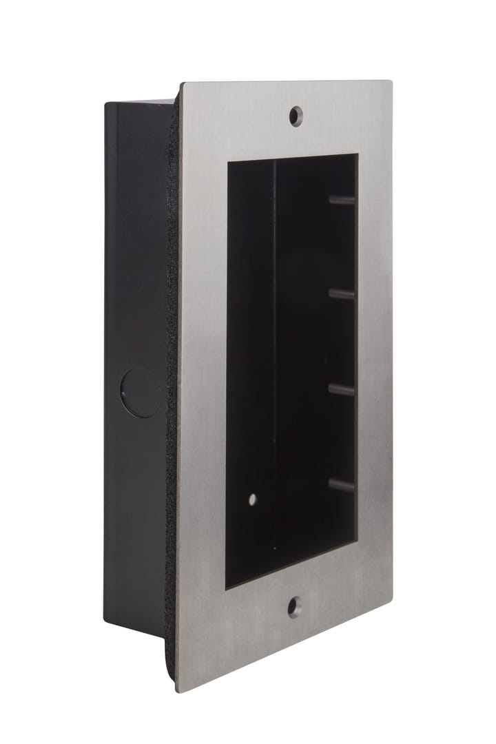 Składa się z dwóch elementów: metalowej puszki podtynkowej i ramki zewnętrznej wykonanej ze szczotkowanej stali szlachetnej