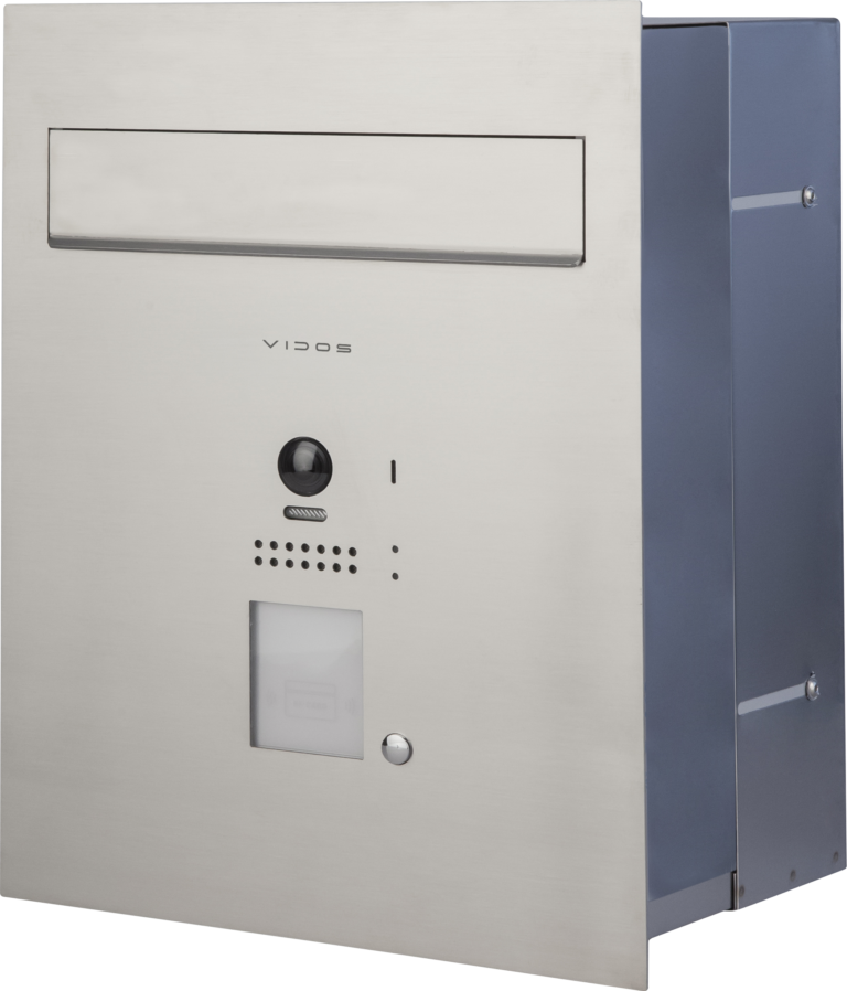 S1201A-SKP to przelotowa, jednowrzutowa skrzynka na listy z wbudowanym panelem wideodomofonowym Vidos S1201A.