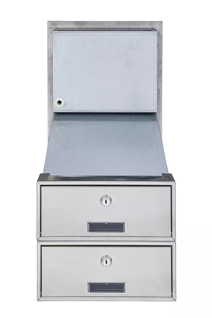 Szuflady o szerokości 250 mm są skośne, dwuczęściowe i rozsuwane. Szuflada to pojemnik na korespondencję wbudowywany w słupek lub mur. Standardowo wykonane są z blachy cynkowanej ogniowo. Dzięki rozsuwanym szufladą głębokość skrzynki może być regulowana w zakresie 260-410 mm.