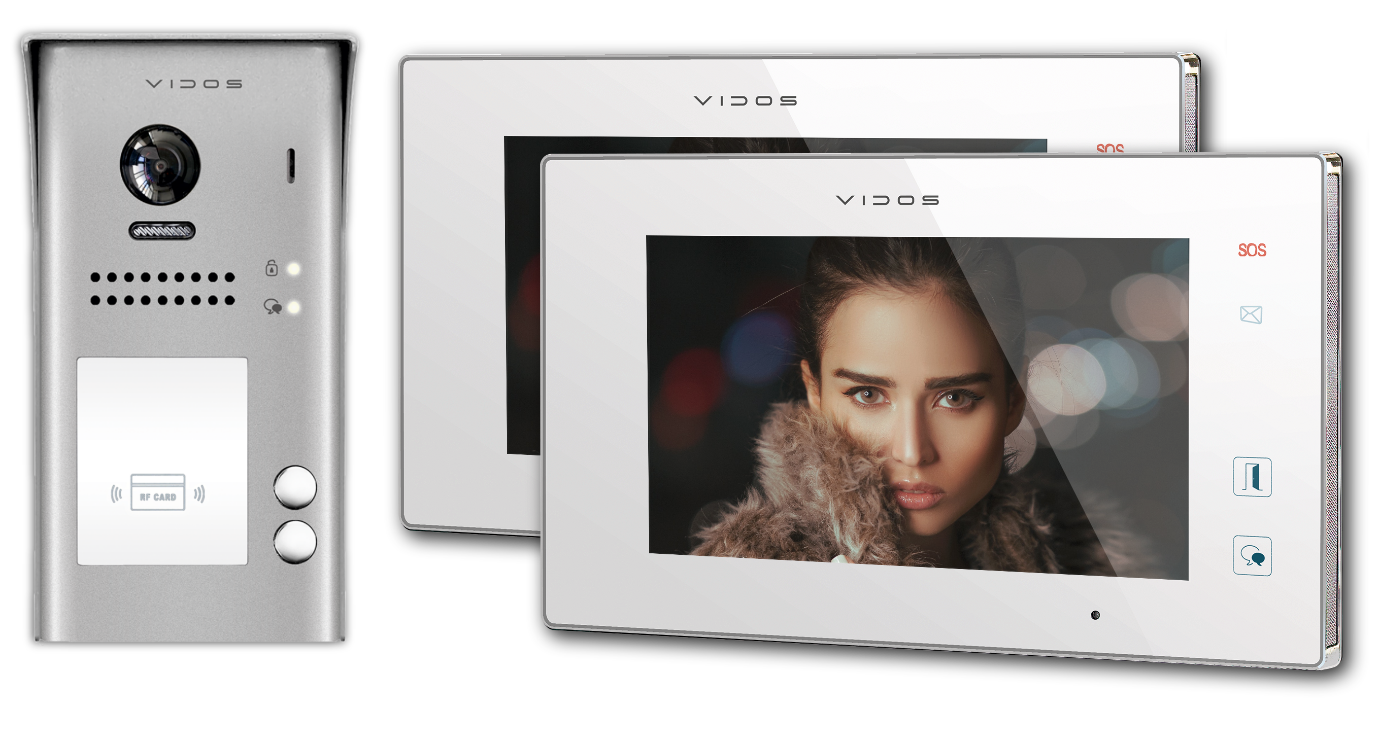 Wideodomofon 2-rodzinny z monitorami M1021W-2 ( 2 szt. ) i stacją bramową S1102A to zestaw przeznaczony do pracy w systemie VIDOS DUO.