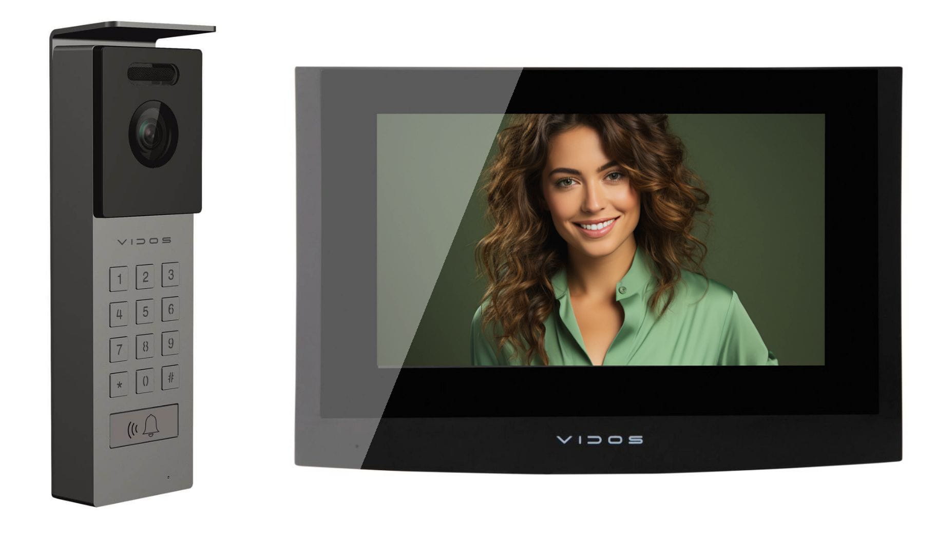 Wideodomofon z monitorem M200B i stacją bramową S202 to zestaw z serii VIDOS 2IP z możliwością otwarcia furtki za pomocą kodu pin.