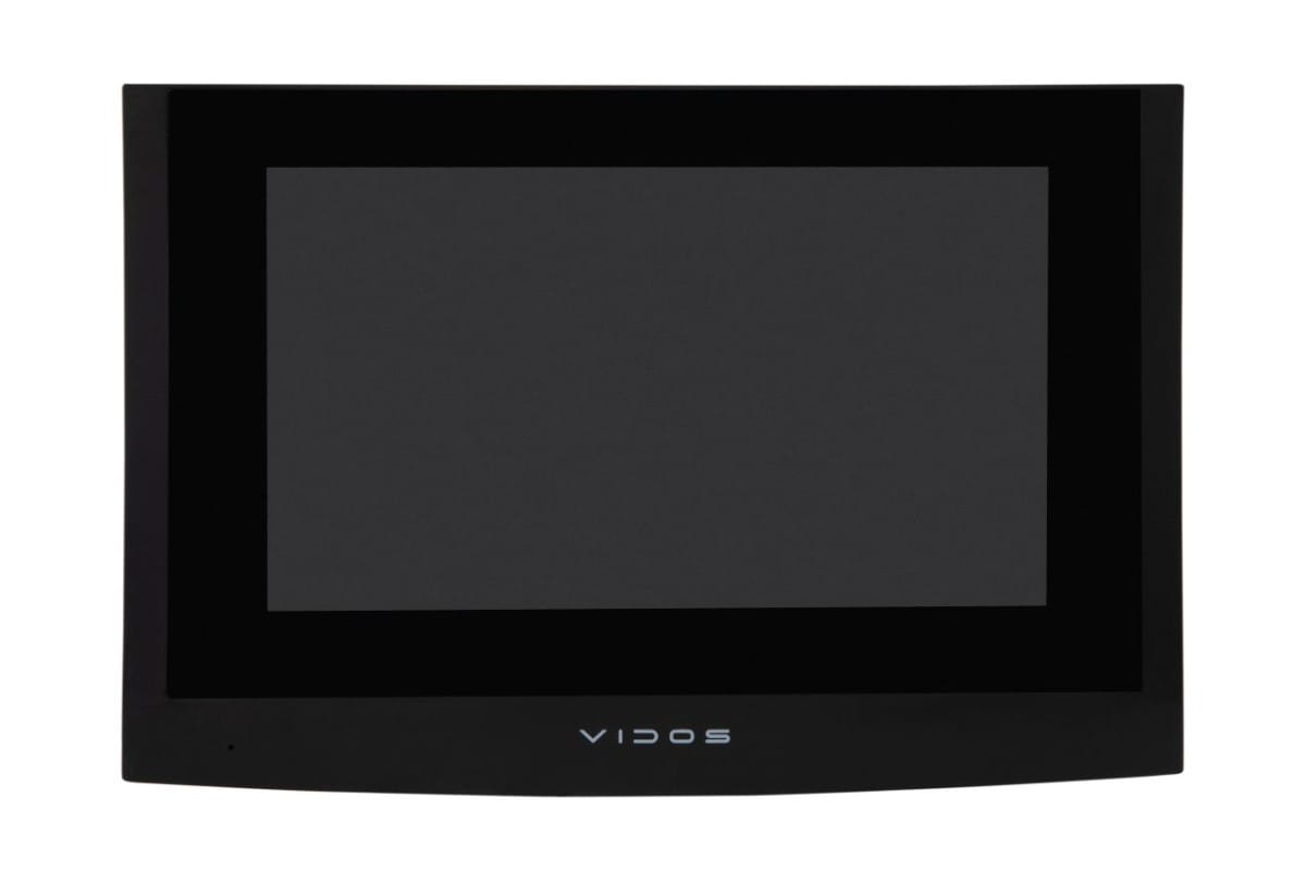M200B-X to wielofunkcyjny monitor przeznaczony do pracy w systemie VIDOS 2IP z wbudowanym Wi-Fi z funkcją przekierowania rozmów na telefon. Posiada szklany ekran dotykowy o rozdzielczości 1024x600px