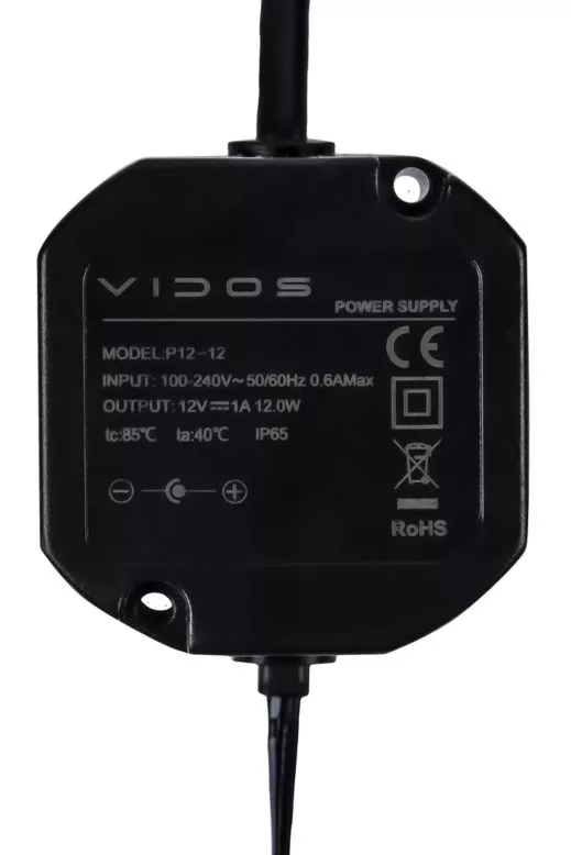 Dopuszkowy zasilacz impulsowy P12/12 marki Vidos to urządzenie przeznaczone do montażu w najpopularniejszej puszce fi 60.